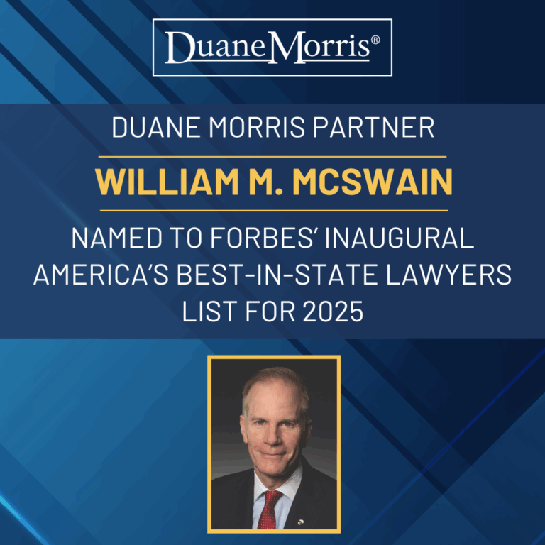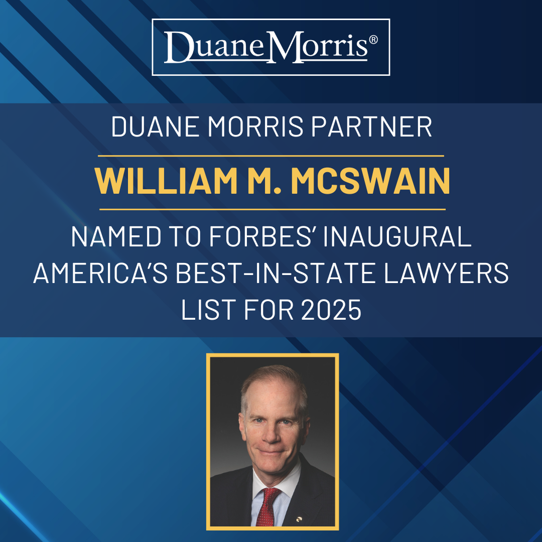 Partner of Duane Morris and co -president of the company Criminal defense of white collars, business surveys and regulatory compliance William M. MCSWAINwas appointed to Forbes“The inaugural list of the best lawyers in America for 2025 in the defending category of white collars – Pennsylvania.
